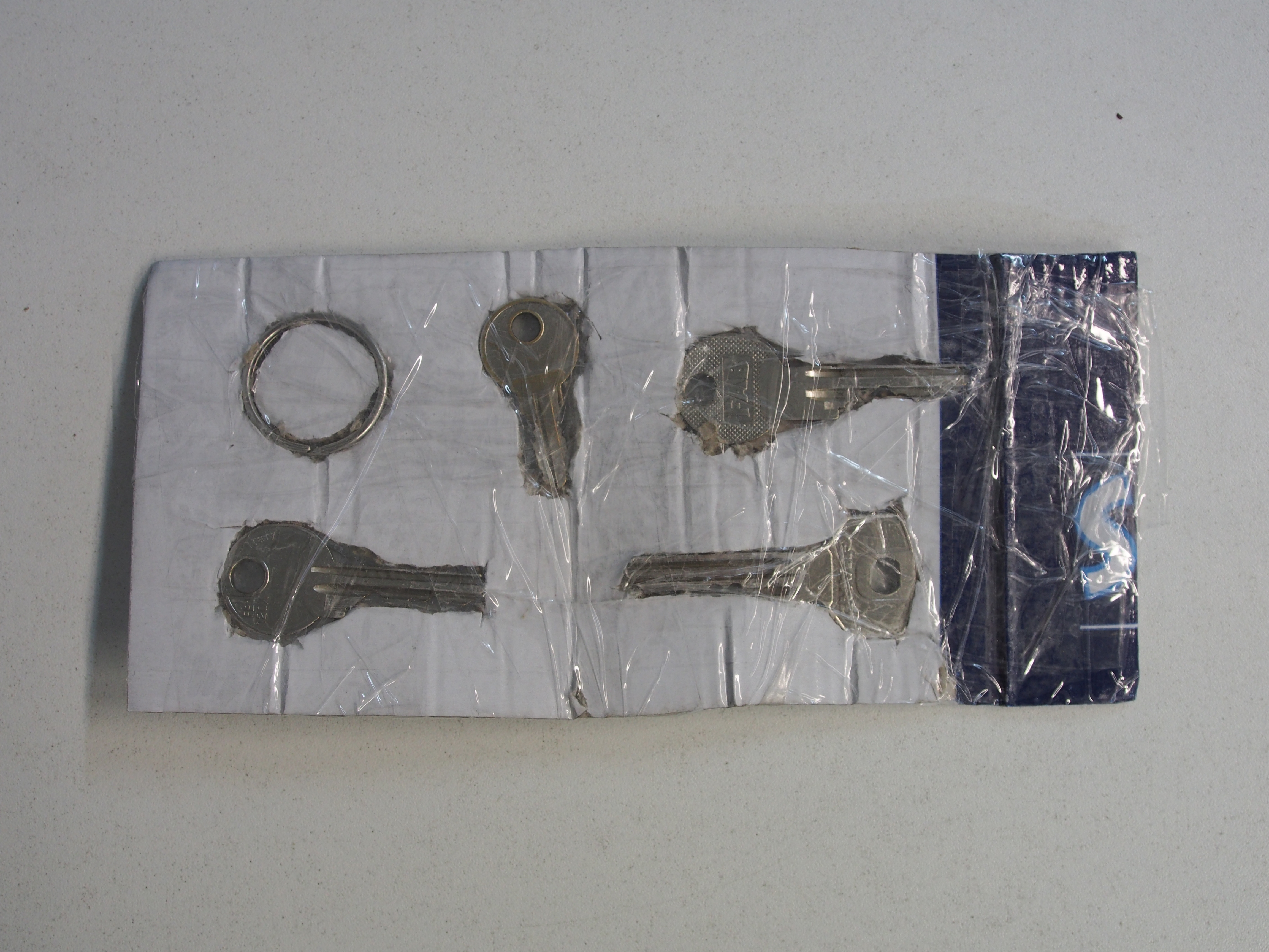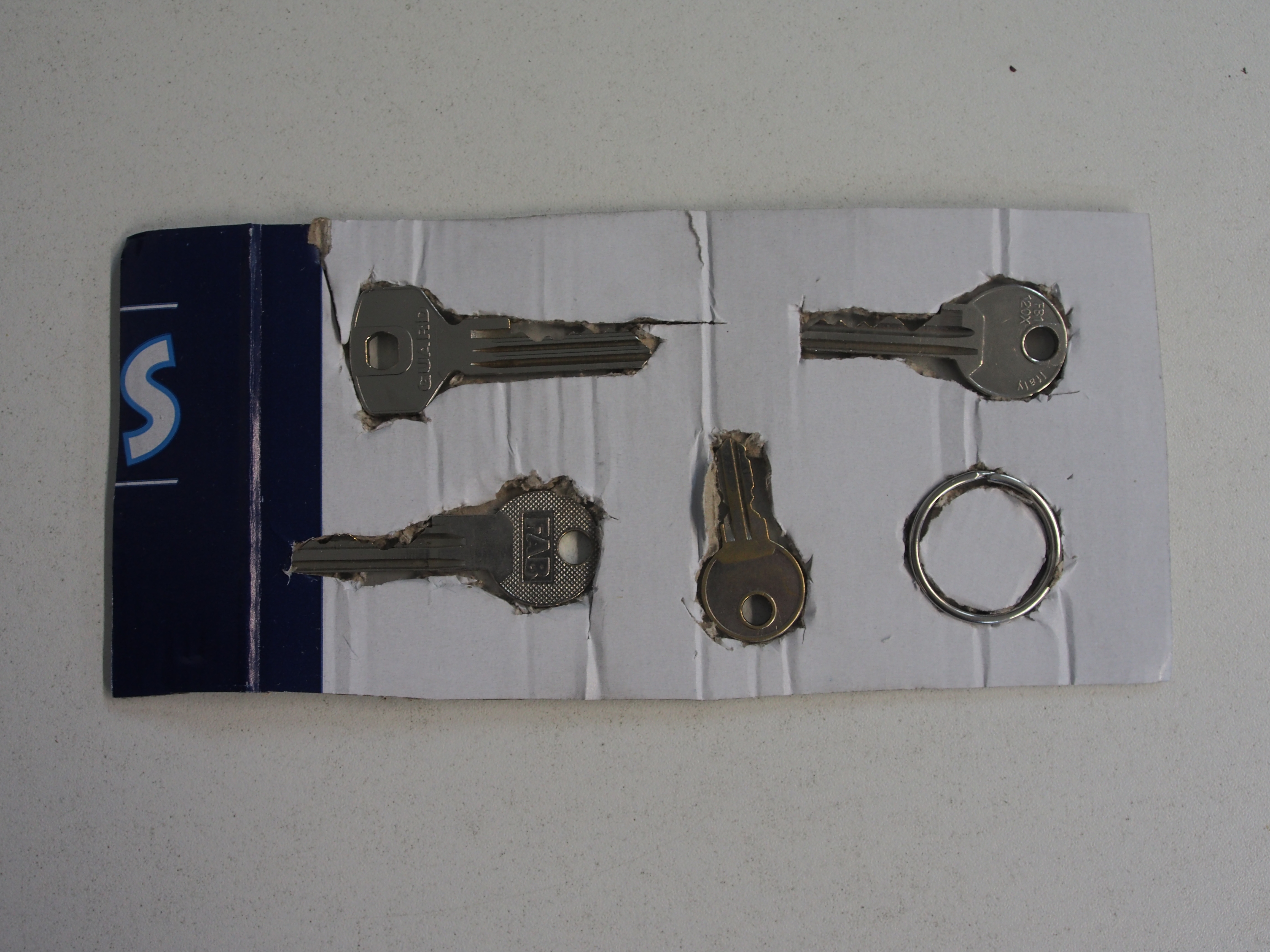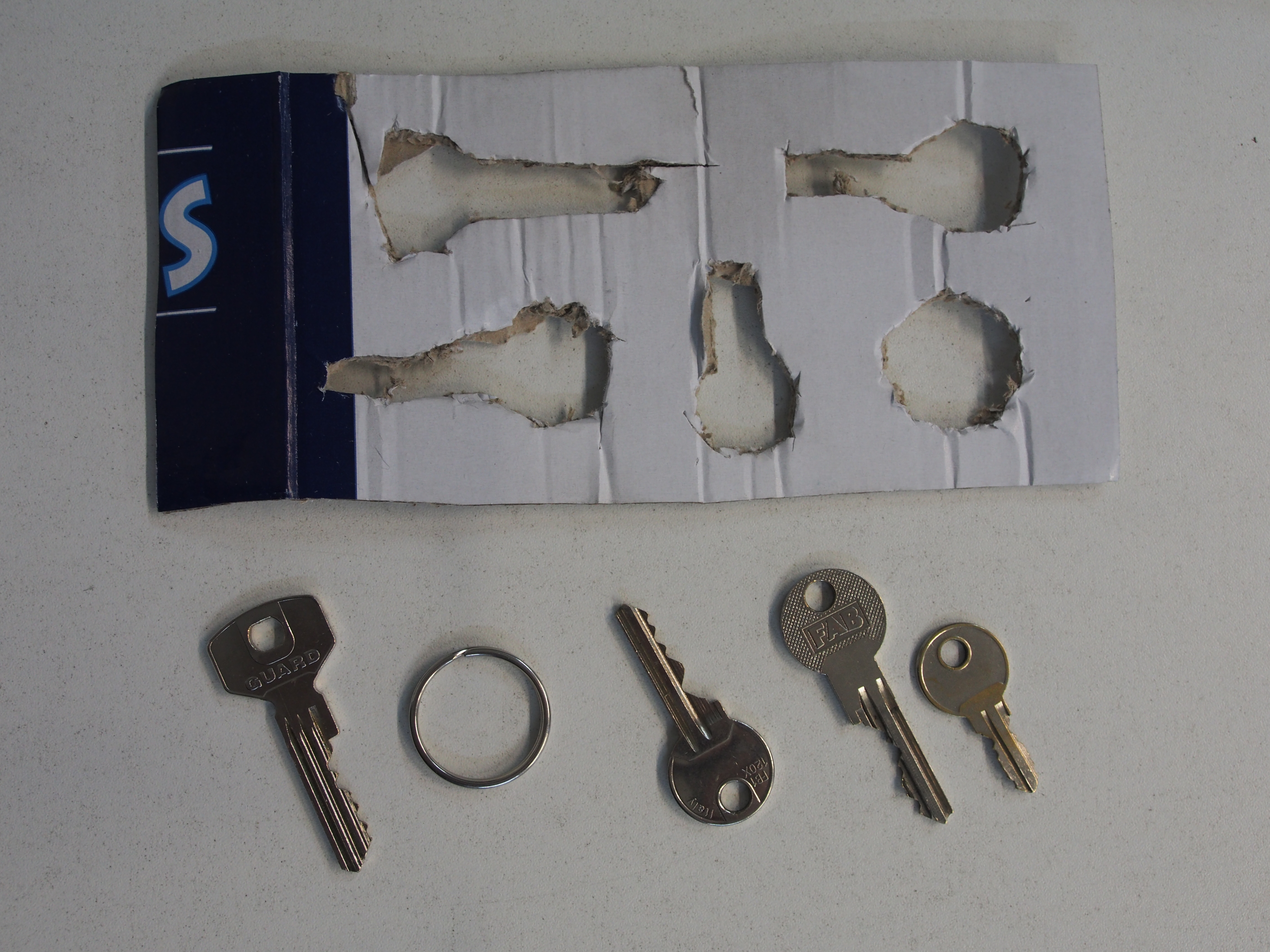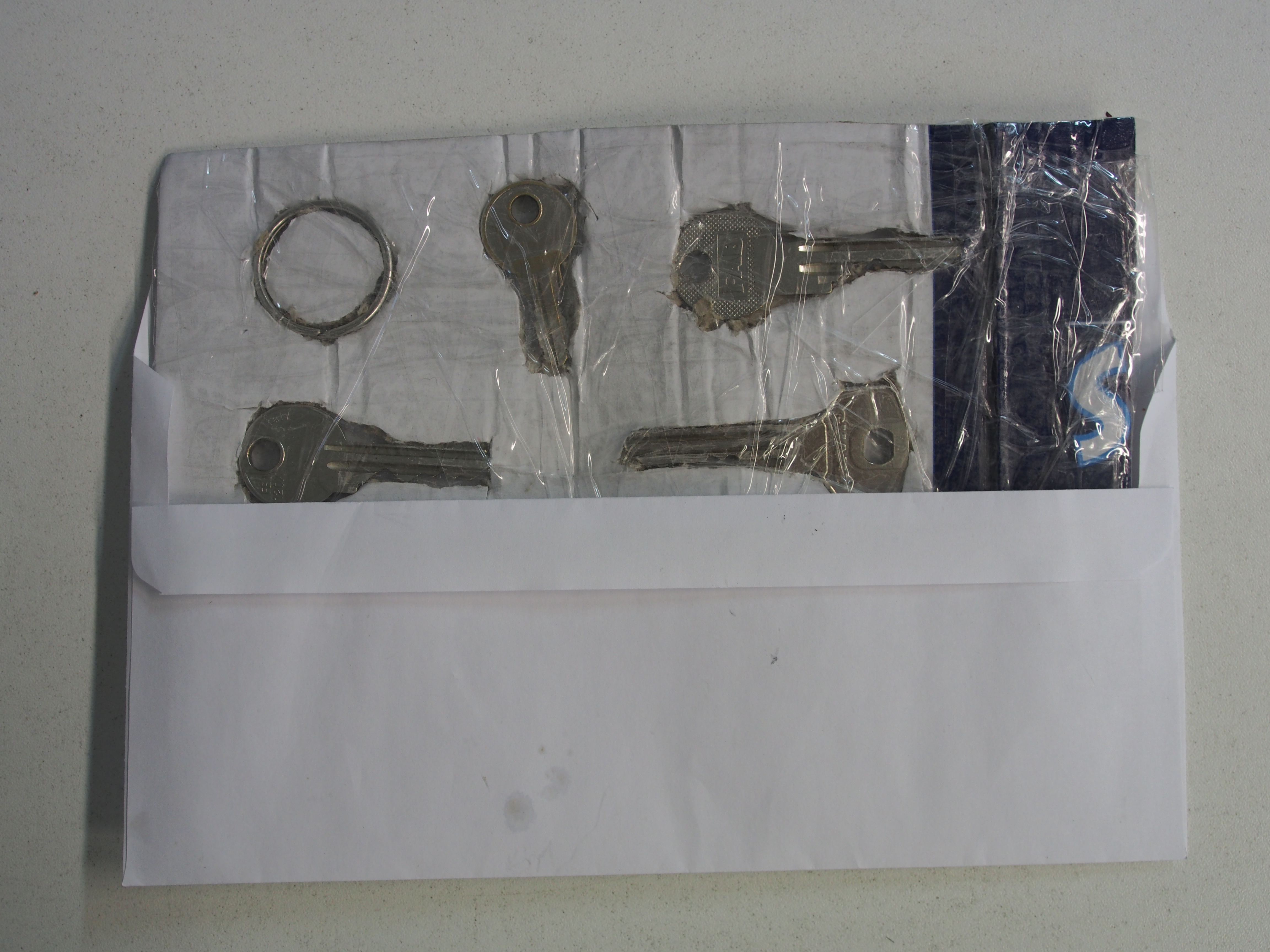 Posílat volně klíče českou poštou v obálce není zrovna ideální. Pro bezpečné odeslání stačí tlustý papír, nejlépe z krabice, vyřezat díry podle klíčů a přelepit lepenkou, aby vše drželo ve správné pozici :-)